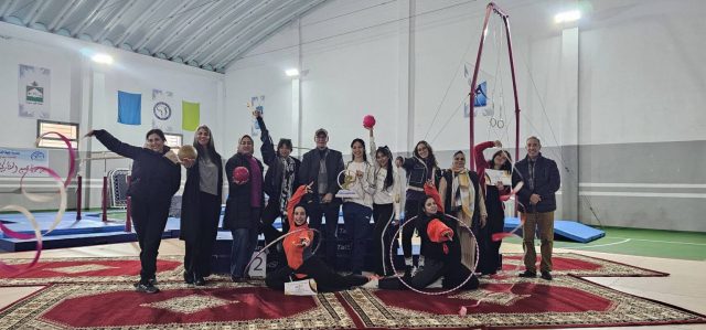 La formation destinée aux enseignants d’éducation physique et sportive de la préfecture de Médiouna en gymnastique rythmique s’est achevée avec succès, sous la supervision de l’arbitre internationale Amnia Chafik, en coordination avec la Fédération Royale Marocaine de Gymnastique et la Ligue Casablanca–Settat de Gymnastique, et avec la présence et le soutien du président de la Fédération Royale Marocaine de Gymnastique, M. Abdessadek Bitari.